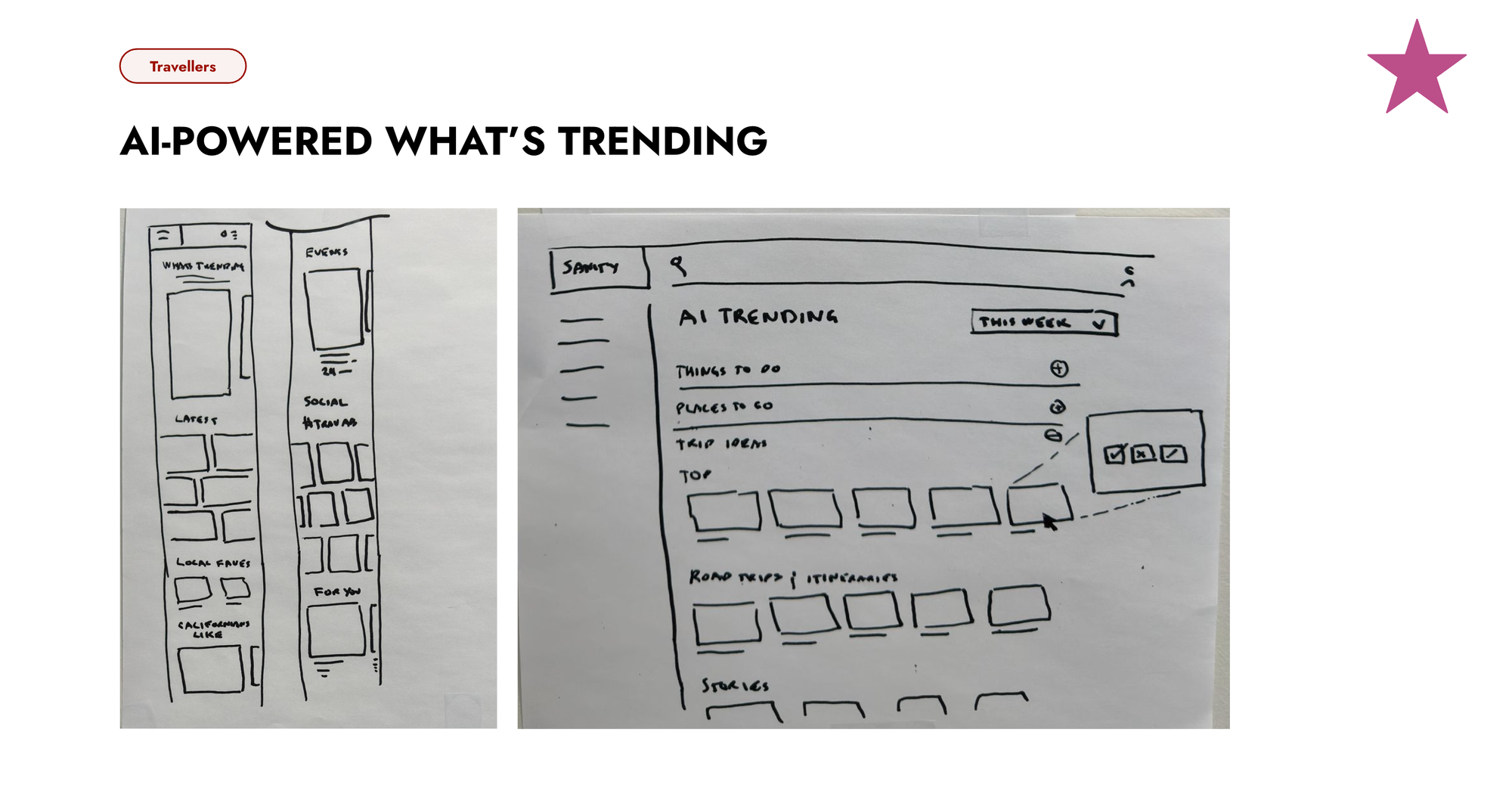Over the next 6-8 months, the team explored, prototyped, and refined the two concepts. One has since launched: an AI-powered page surfacing trending travel experiences in Alberta.