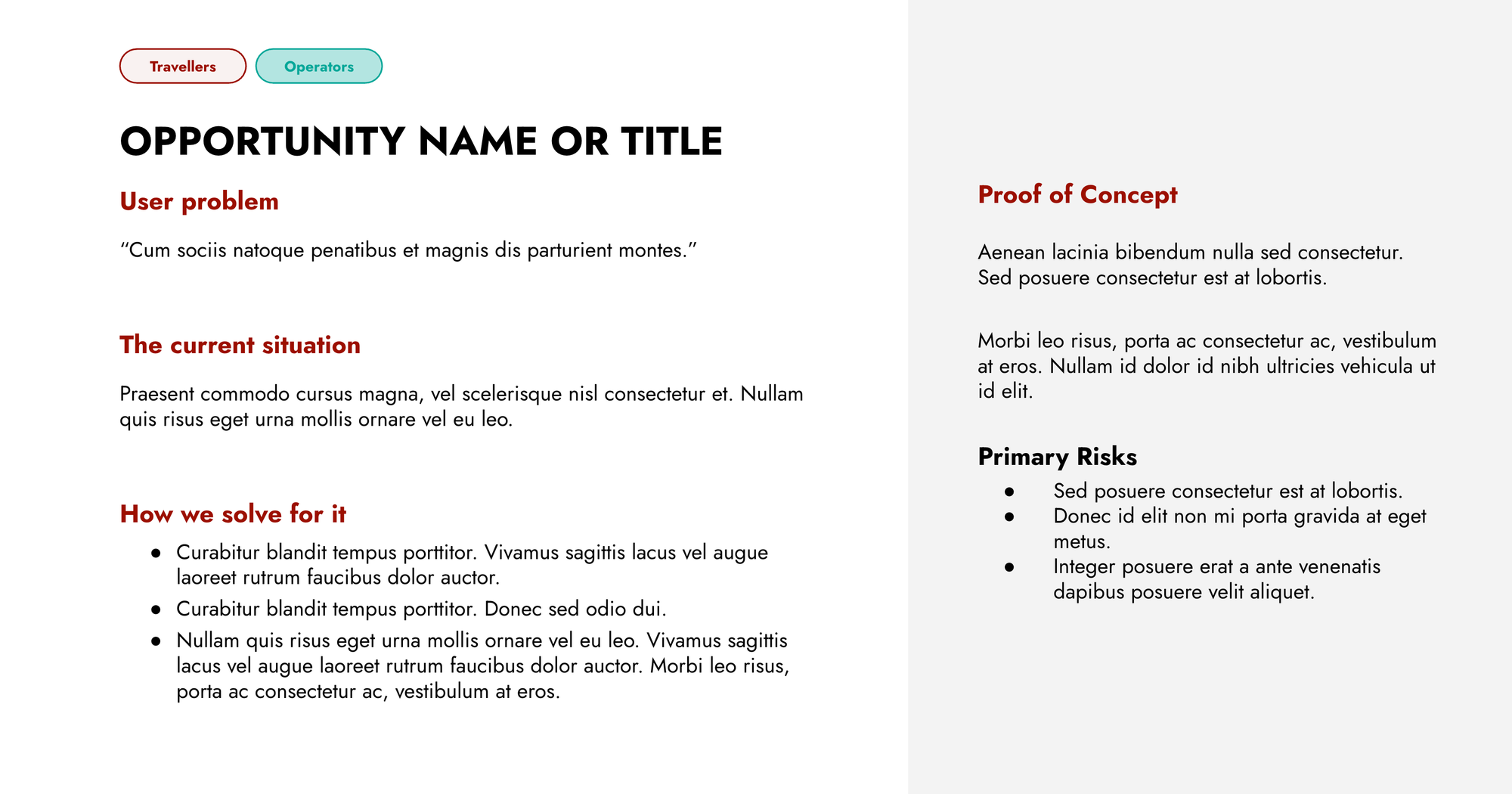 The team prioritized the development of two proof of concepts β one for travellers, and one for tourism operators. I advocated for proof of concept development first so that we could test the system, assess whether things were working, and build confidence before releasing the functionality to the world.