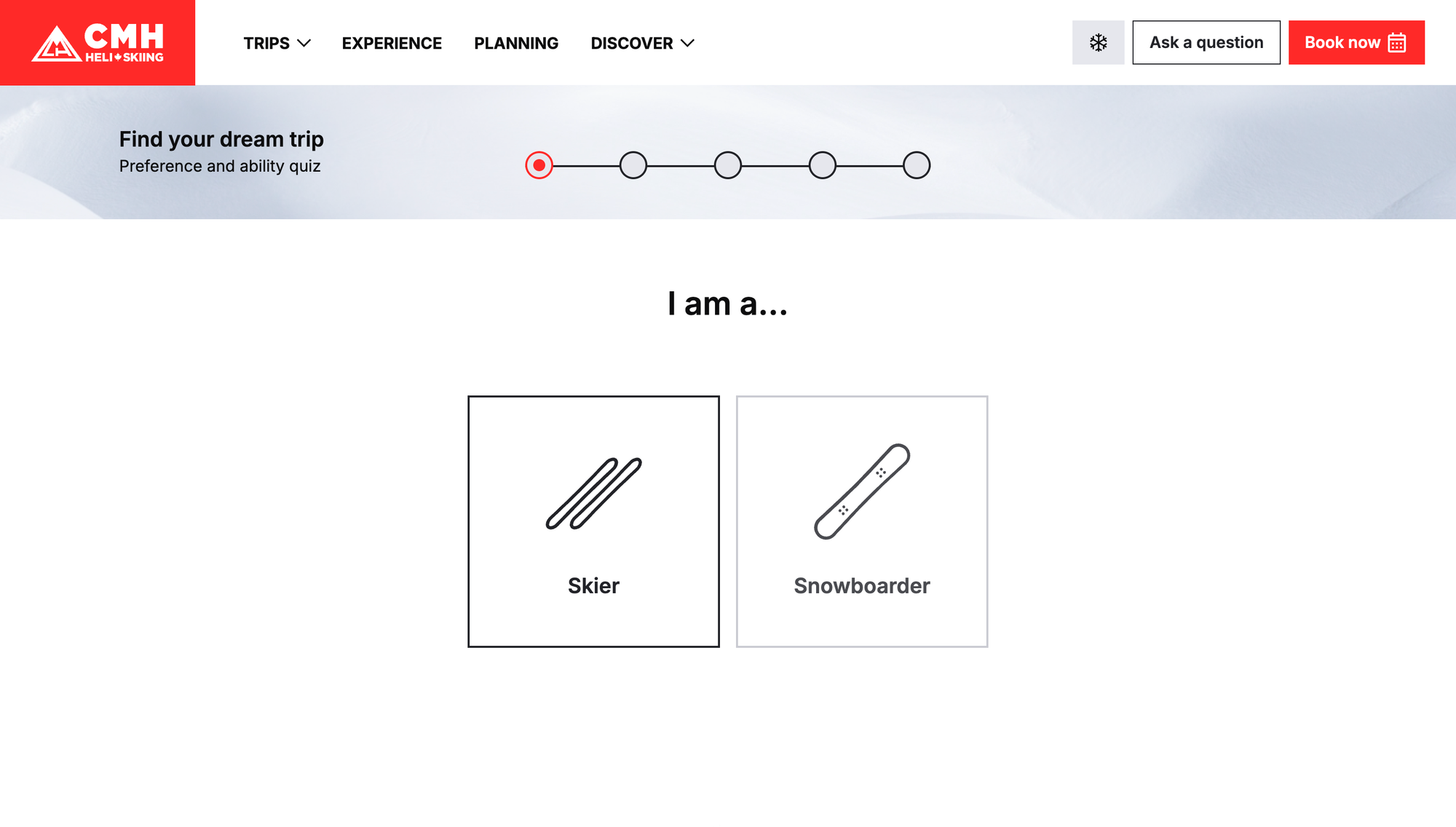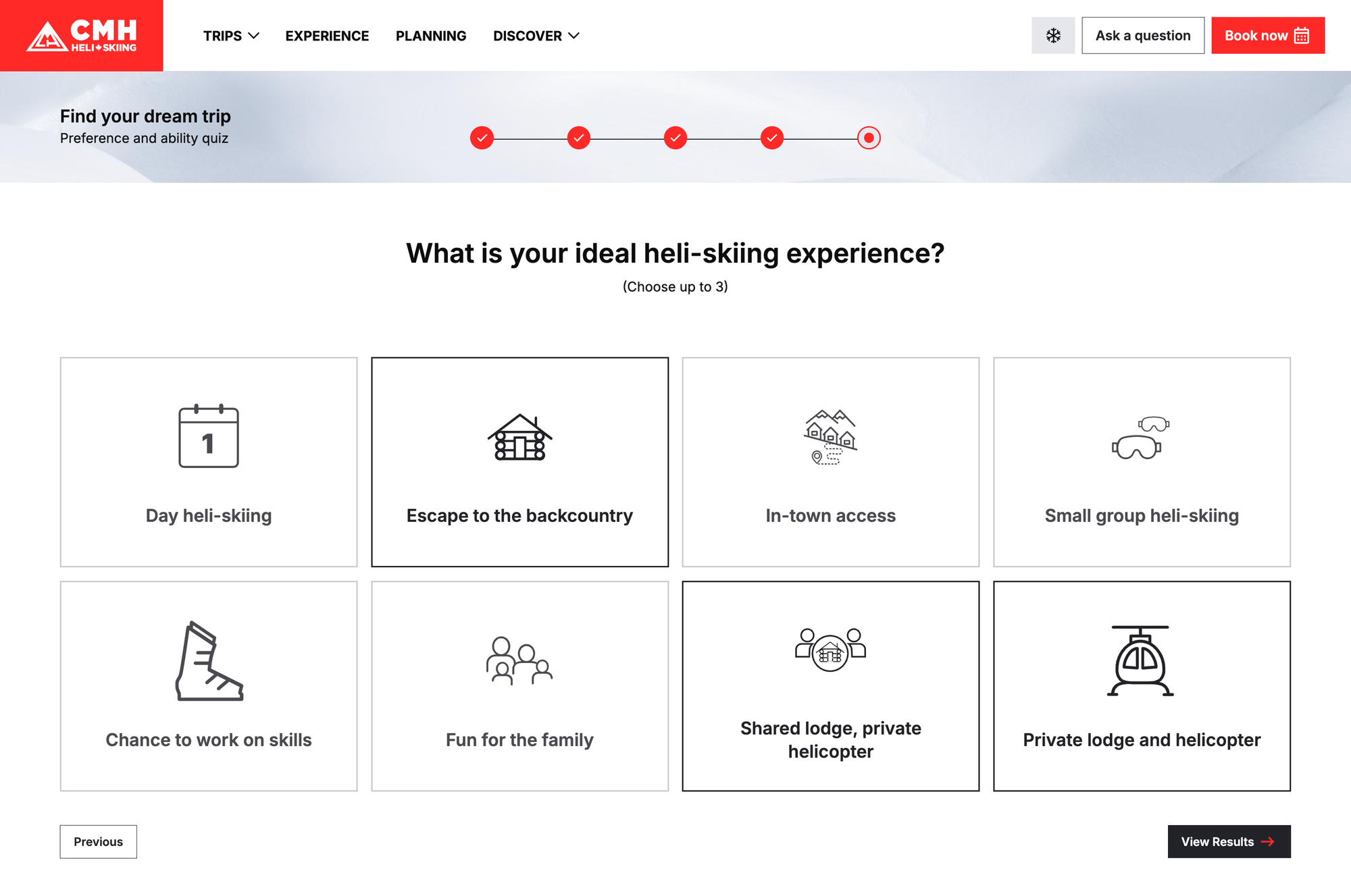 A modern booking system and planning quiz for the world's largest heli-skiing operator.