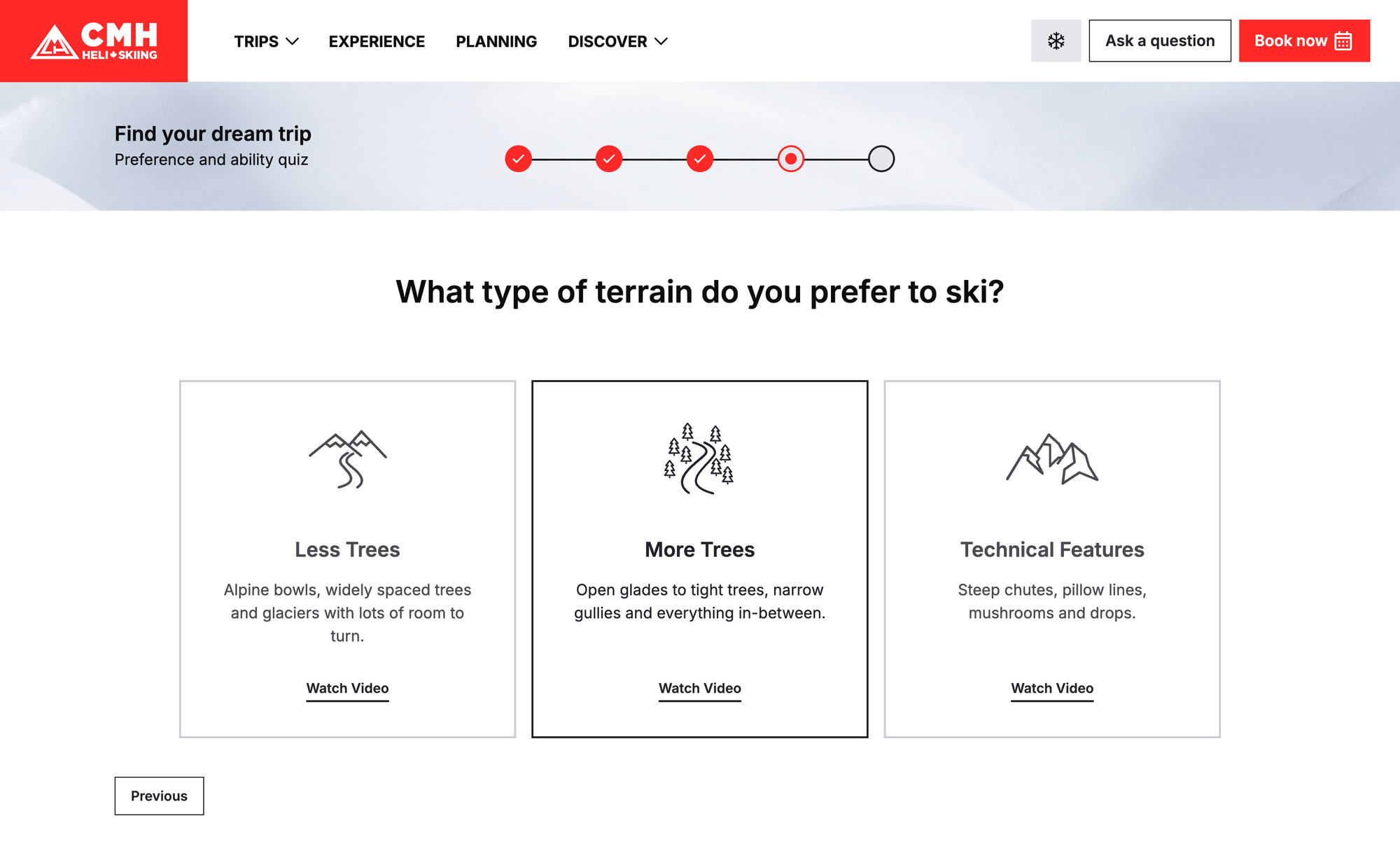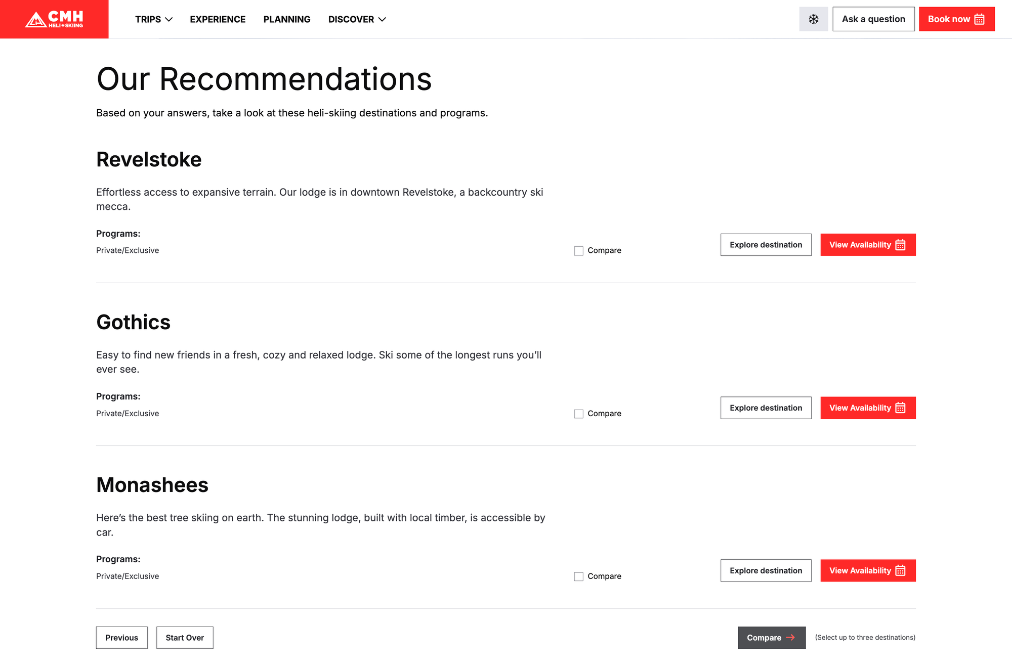 With 12 unique lodges, 9 distinct programs, and 350+ trips offered every season, CMH needed an intuitive booking system to guide, educate, and convert new heli-skiers.